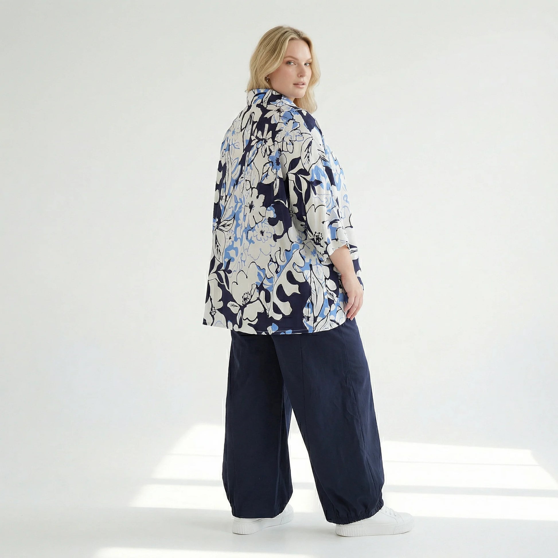AKH Fashion Jacke in gerundeter Form, aus Viskose, 1574.07092, Weiß/Marine/Blau, Blumen